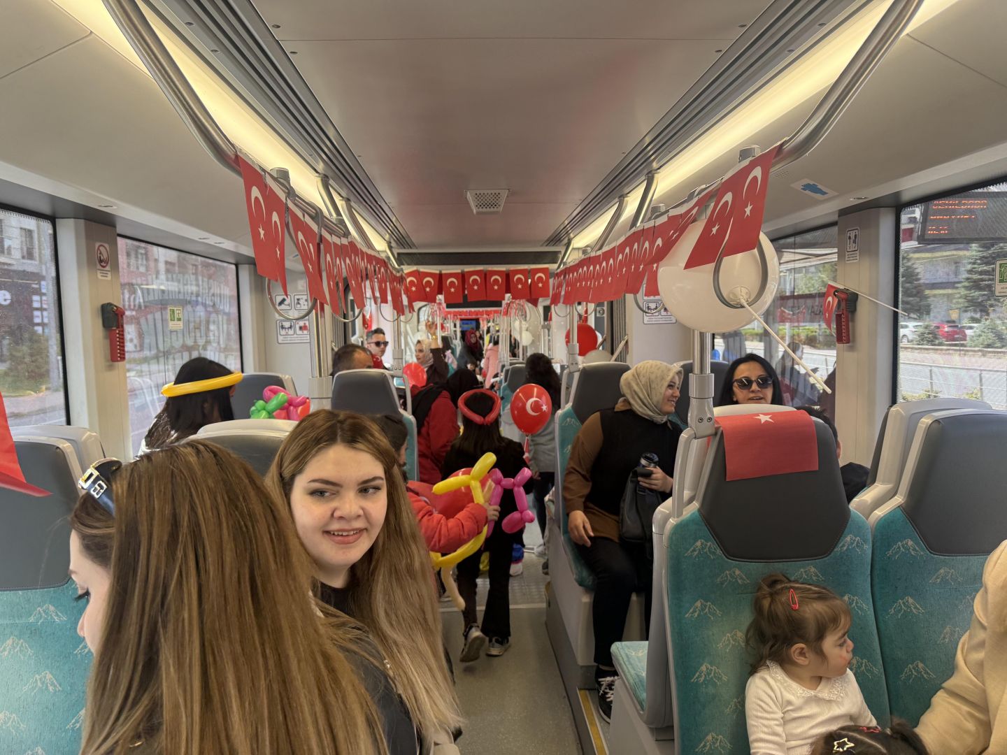 Yolculuk boyunca palyaçolar eşliğinde gerçekleştirilen etkinliklerde çocukların yüzleri boyandı, balonlar ve Türk bayrakları hediye edildi. Trende oluşan neşeli atmosfer, bayram coşkusunu raylara taşıdı.