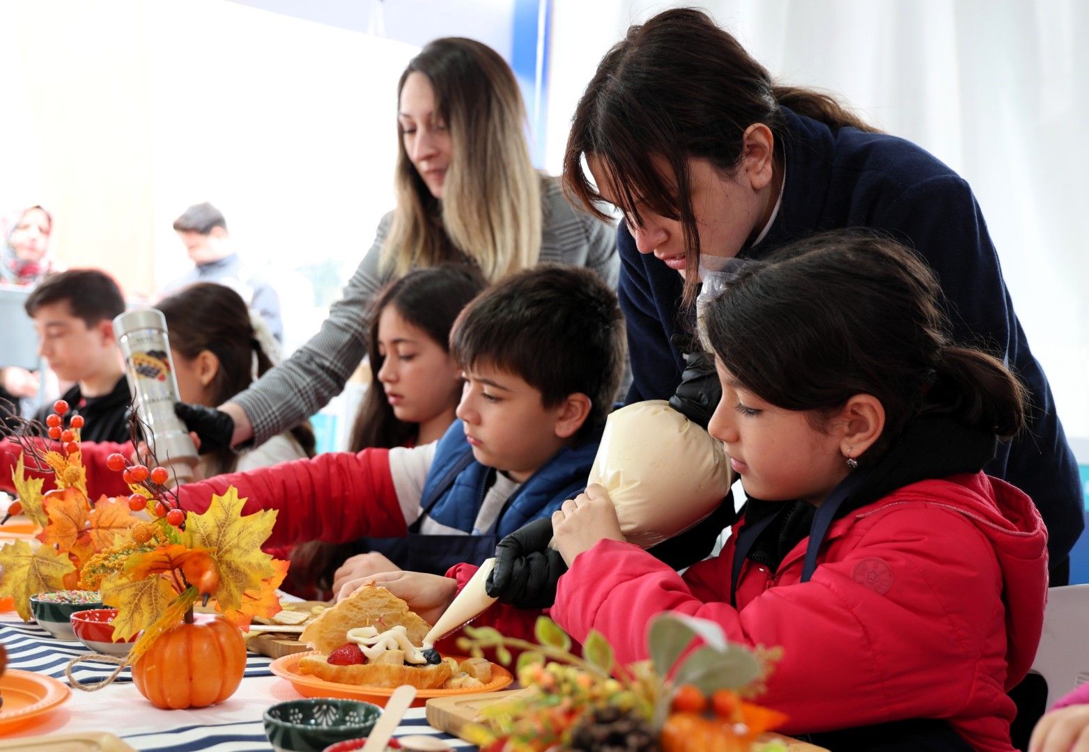 Atölyede minik katılımcılar, kruvasanlarını adeta küçük birer sanat eserine dönüştürüyor. Çikolata sosları, meyveler ve farklı süslemelerle hazırlanan ürünler, çocukların hayal gücünü yansıtan renkli tablolara dönüşüyor. Ortaya çıkan kruvasanlar sadece süslenmekle kalmıyor; çocuklar tarafından büyük bir keyifle tüketiliyor. Böylece etkinlik, hem üretme hem de paylaşma duygusunu aynı anda yaşatıyor.