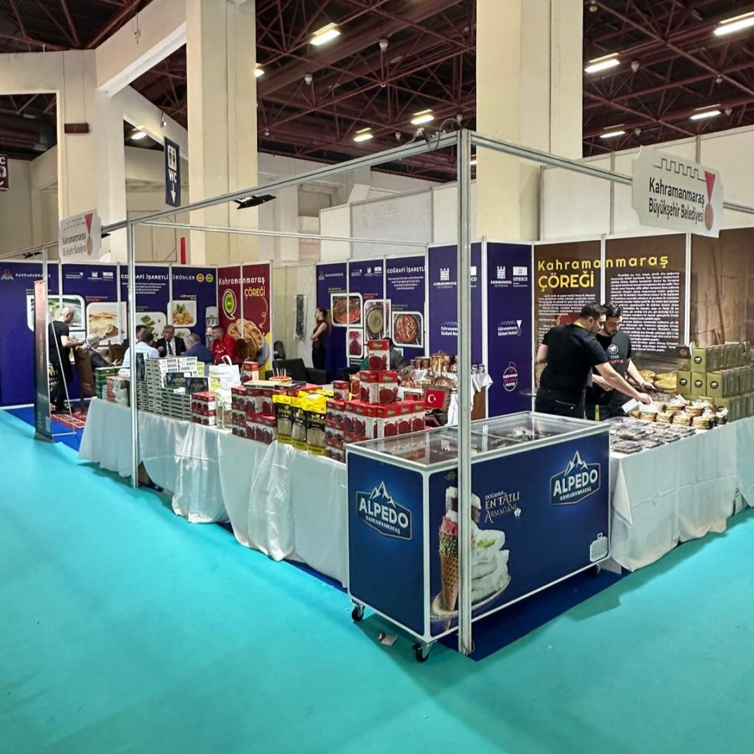 Kahramanmaraş’ın zengin mutfak kültürü ve köklü el sanatları geleneği, Yöresel Ürünler Fuarı’nda (YÖREX) bu yıl da geniş kitlelerle buluştu. ANFAŞ Antalya Fuar ve Kongre Merkezi’nde 22 – 26 Nisan tarihleri arasında düzenlenen organizasyonda Kahramanmaraş Büyükşehir Belediyesi tarafından açılan stant, yerli ve yabancı ziyaretçilerin yoğun ilgisiyle karşılandı. Fuarda Kahramanmaraş’a özgü birçok lezzet bir arada tanıtıldı. Coğrafi işaretli ürünleriyle öne çıkan şehir, özellikle Maraş dondurması ve fıstık ezmesiyle dikkat çekerken; Kahramanmaraş Çöreği, Çağlayancerit Cevizi, samsa ve tarhana gibi geleneksel tatlar da ziyaretçilere sunuldu. Standı ziyaret eden katılımcılar, ürünleri tatma fırsatı bulurken aynı zamanda bu lezzetlerin üretim süreçleri hakkında da bilgi edindi.