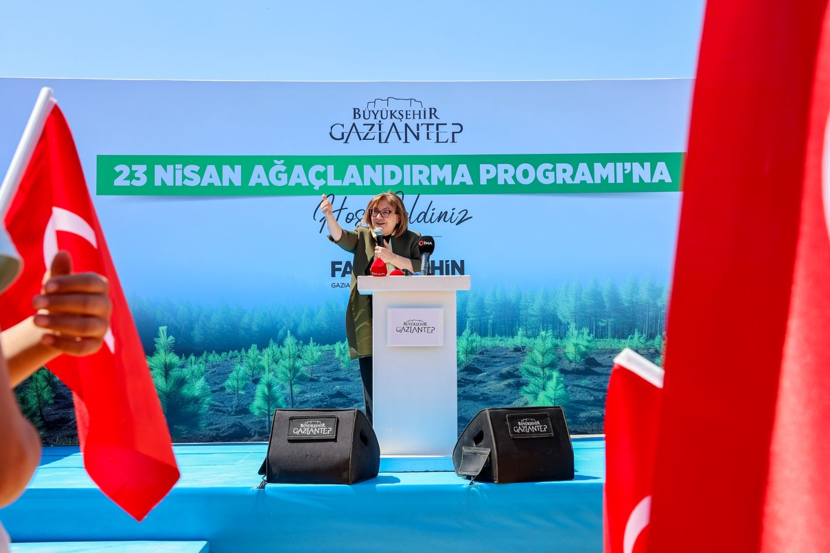 “Her bir fidan bugün siz çocuklarımızsınız. Sevgili çocuklar, yarın kocaman bir bilgi ormanına dönüşeceksiniz. O bilgi ormanı yarının valisi olacak. Komutanı, rektörü, belediye başkanı olacak. Yarının genel sekreteri olacak. Genel sekreter yardımcısı olacak, yöneticileri olacak. Bunu birlikte başaracağız. Gaziantep, yeşil şehirler, huzurlu nesiller noktasında çok önemli bir ilerleme gerçekleştirdi. Atatürk’ün bize bıraktığı bilimi ve aklı kutup yıldızımız yaparak yol haritamızı oluşturuyoruz. Saygıdeğer Cumhurbaşkanımızın siz çocuklara olan güvenini bir kez daha hatırlatıyoruz.”