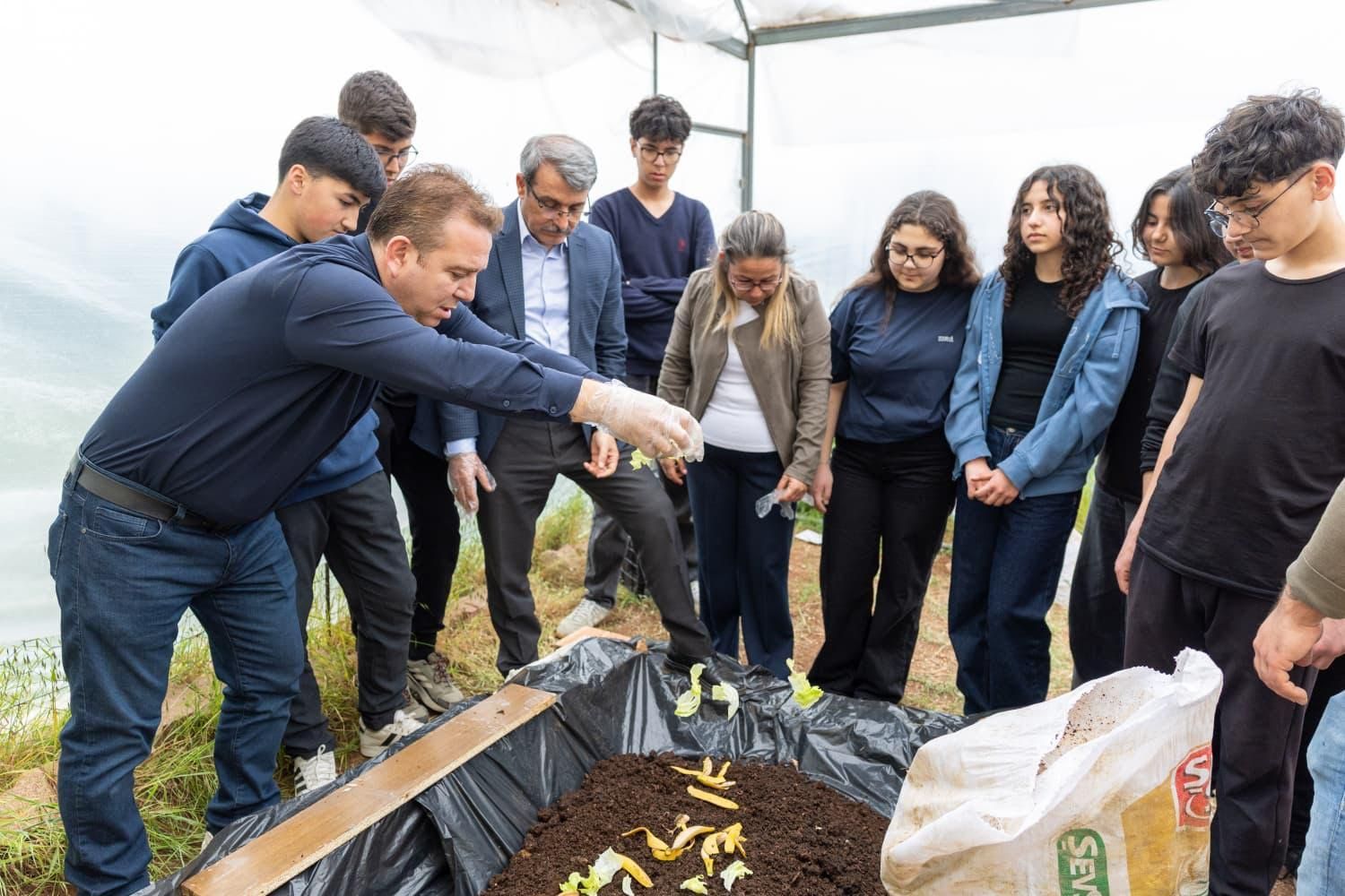 Proje Koordinatörü Biyoloji Öğretmeni Neslihan Mençek, seranın sadece bir üretim alanı değil, aynı zamanda bilimsel araştırma ve proje geliştirme merkezi olacağını belirtti. Öğrencilerin burada edindikleri deneyimleri TÜBİTAK ve Teknofest gibi platformlara taşıyabileceklerini ifade eden Mençek, “Amacımız öğrencilerimizin tarımsal üretim teknolojileri konusunda bilinçlenmesini sağlamak ve yenilikçi çözümler geliştirmelerine katkı sunmak” dedi.Kısa sürede öğrencilerde önemli gelişimler gözlemlediklerini dile getiren Mençek, özellikle sorumluluk bilincinin arttığını vurguladı. Öğrencilerin her gün seraya gelerek bitkilerin gelişimi için gerekli ölçümleri yaptığını belirten Mençek, küçük bir alanın nasıl yeşerdiğini ve geri dönüşümün doğaya katkısını birebir deneyimlediklerinin altını çizerek, “Serada şu anda domates, marul, çilek ve salatalık yetiştiriliyor. İlerleyen süreçte ürün çeşitliliğinin artırılması hedefleniyor. Projenin bir diğer amacı ise her evde temel sebzelerin yetiştirilebileceği sistemlerin yaygınlaşmasına öncülük etmek” dedi.